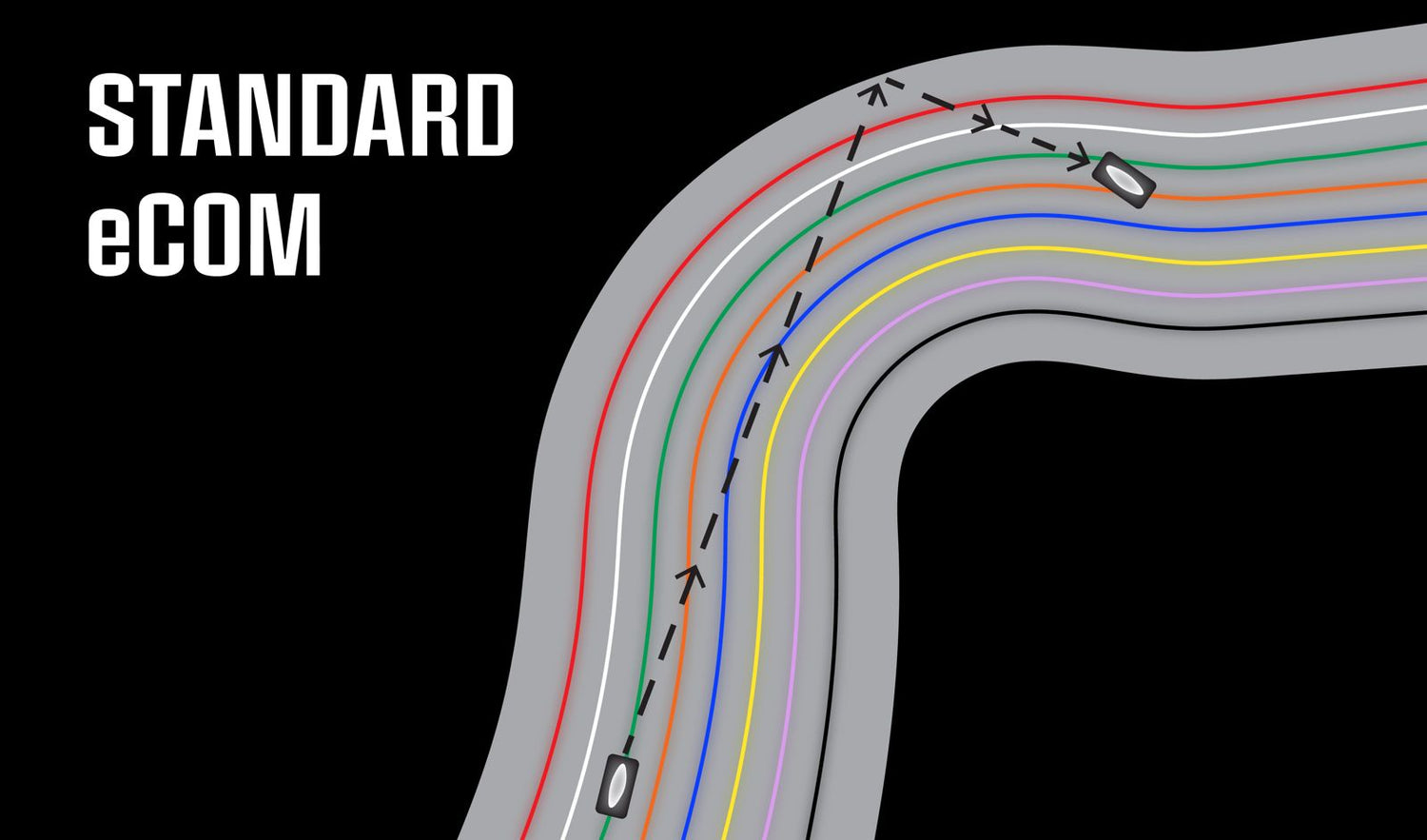 In comparison with Auto-Brake eCOM, any standard eCOMs would allow the car to keep rolling with its inertia when de-slotted.